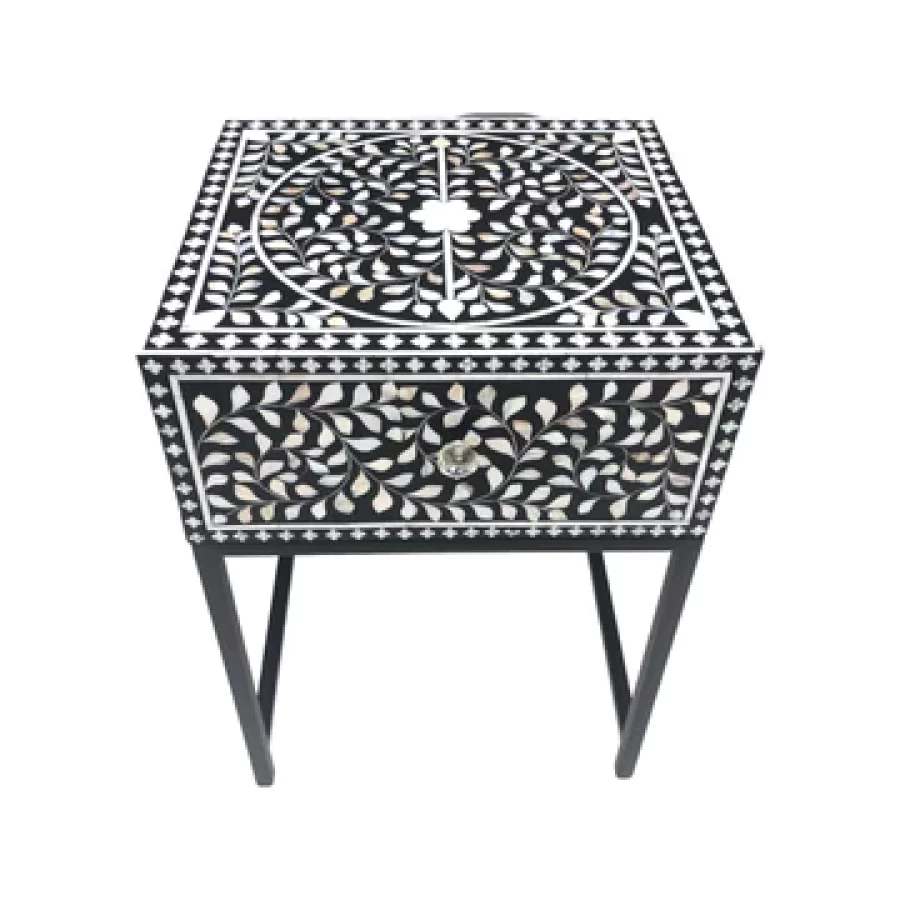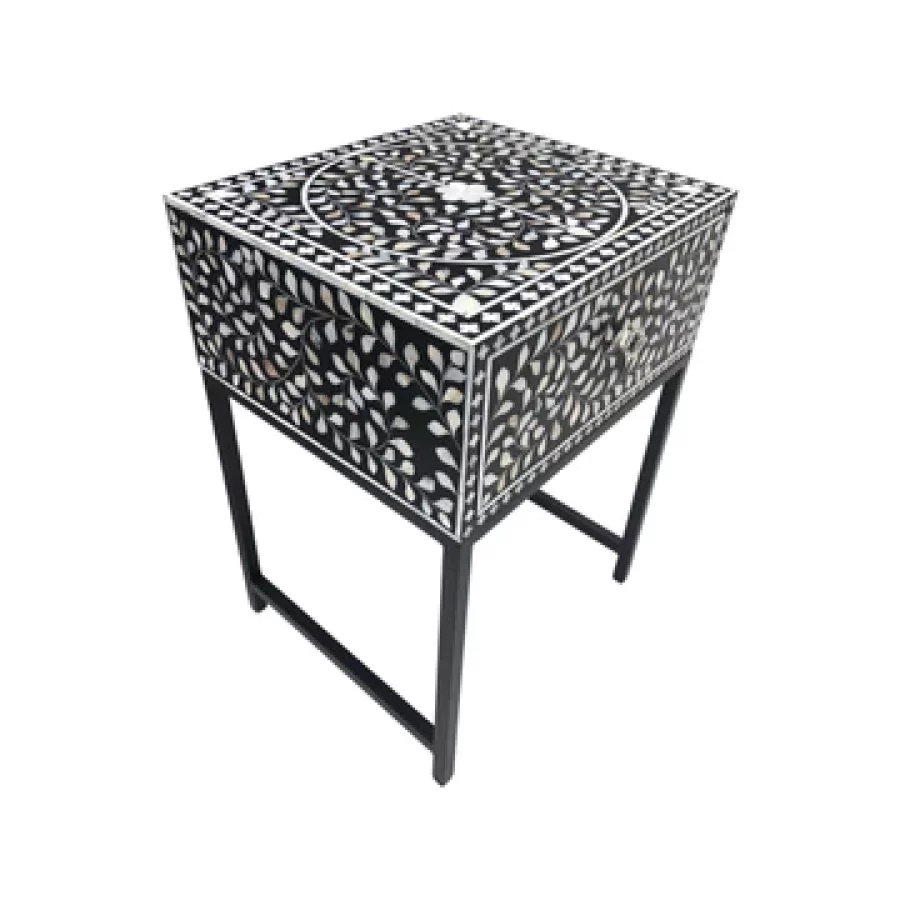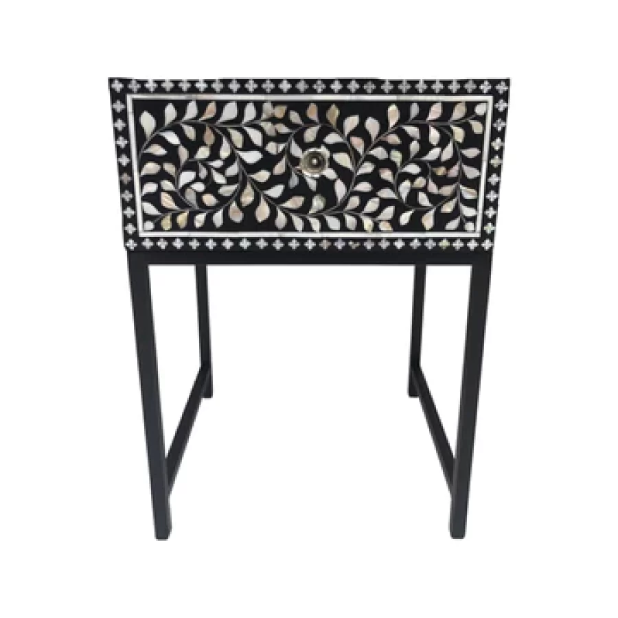In conclusion, the MOP Bedside Drawer Table is a remarkable piece of furniture that combines functionality with aesthetic appeal. Its high-quality craftsmanship, ample storage, and exquisite Mother of Pearl inlay work make it a standout choice for anyone looking to elevate their bedroom decor. Whether you’re a fan of traditional elegance or modern chic, this bedside table is sure to become a cherished addition to your bedroom.